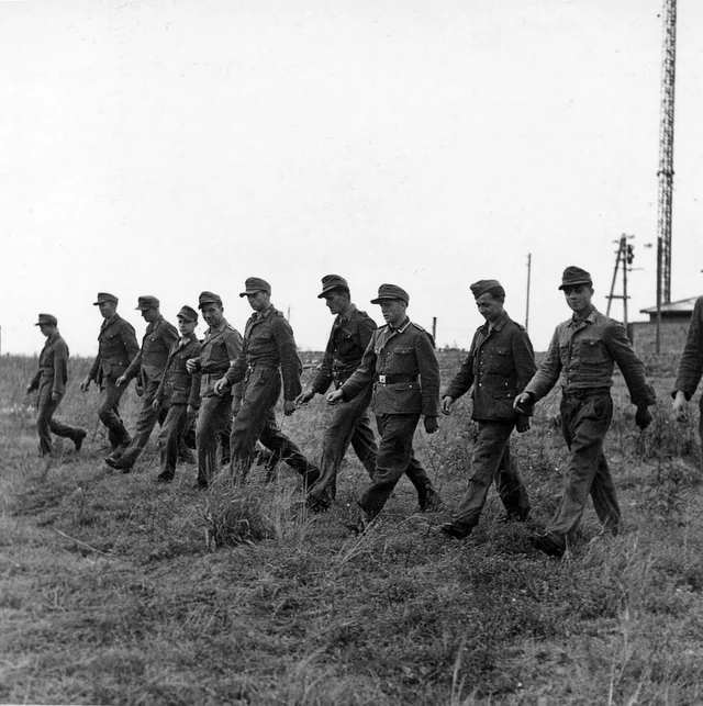 Начало контрольного прохода немецких саперов по разминированному минному полую.