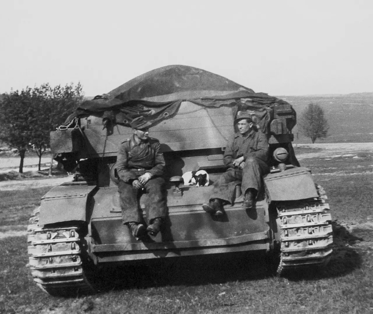 Экипаж немецкой БРЭМ Бергепанцерваген III отдыхает, сидя на броне