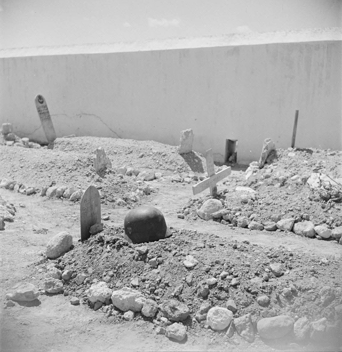 Могила немецкого солдата на кладбище Пишон (Pichon) в Тунисе. На могиле лежит немецкий армейский стальной шлем.