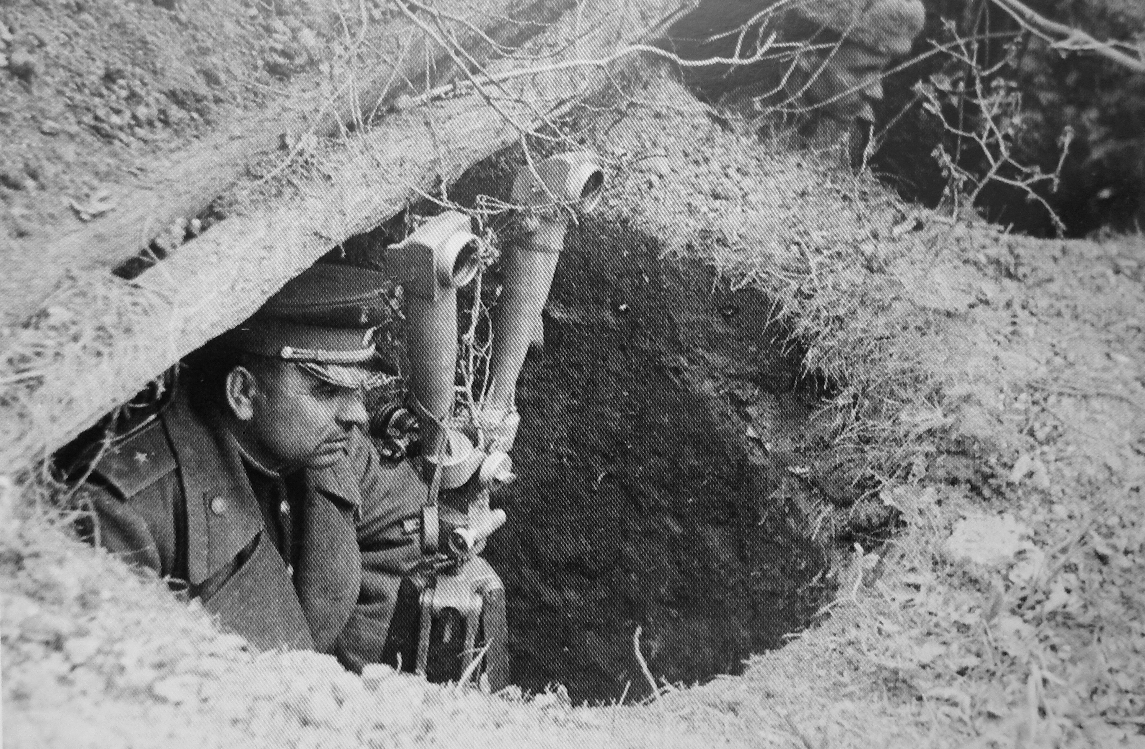 Командир 333-й стрелковой дивизии 66-го стрелкового корпуса 6-й армии 3-го Украинского фронта Герой Советского Союза генерал-майор Анисим Михайлович Голоско (14.02.1900 — 28.02.1955) на наблюдательном пункте во время наступательных боев южнее Тирасполя.