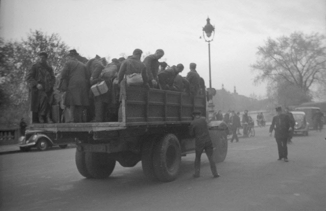 Посадка на грузовик бывших военнопленных после прибытия на вокзал Орсе в Париже.