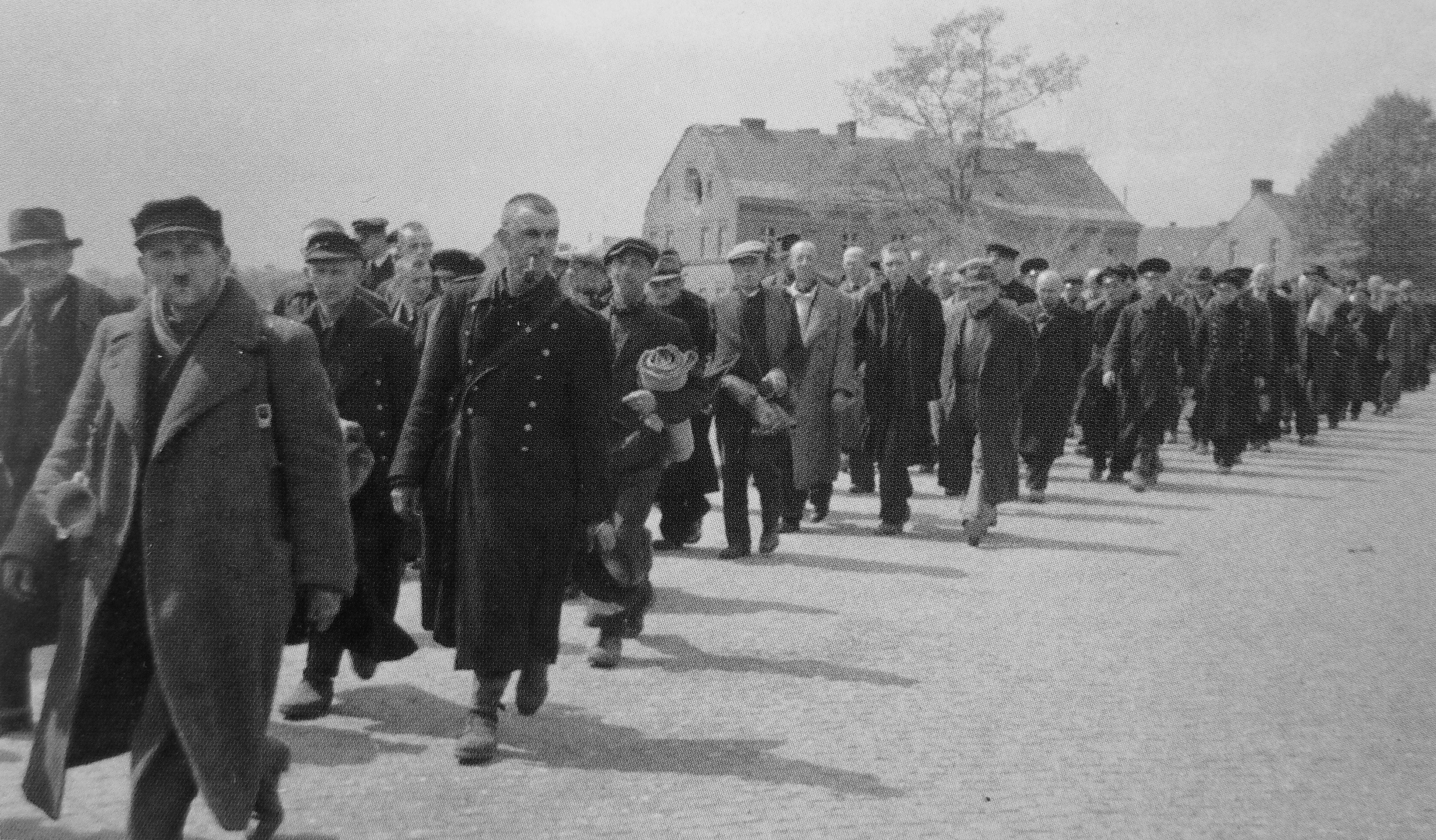 Колонна капитулировавших немецких подразделений на улице в пригороде Берлина [3]