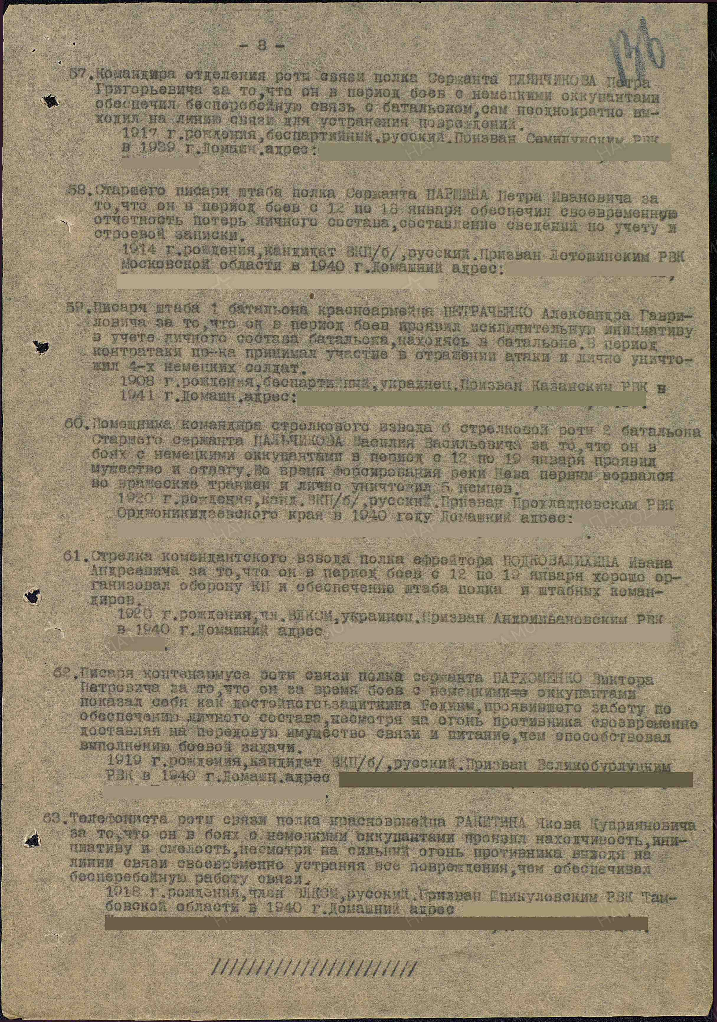 Приказ этот издан на прорыв блокады, но уже через через год, после операции по снятию блокады, Куликову Веру Михайловну опять награждают, но уже как Телефонистку роты связи полка гвардии красноармейца ... призвана Парголовским РВК".