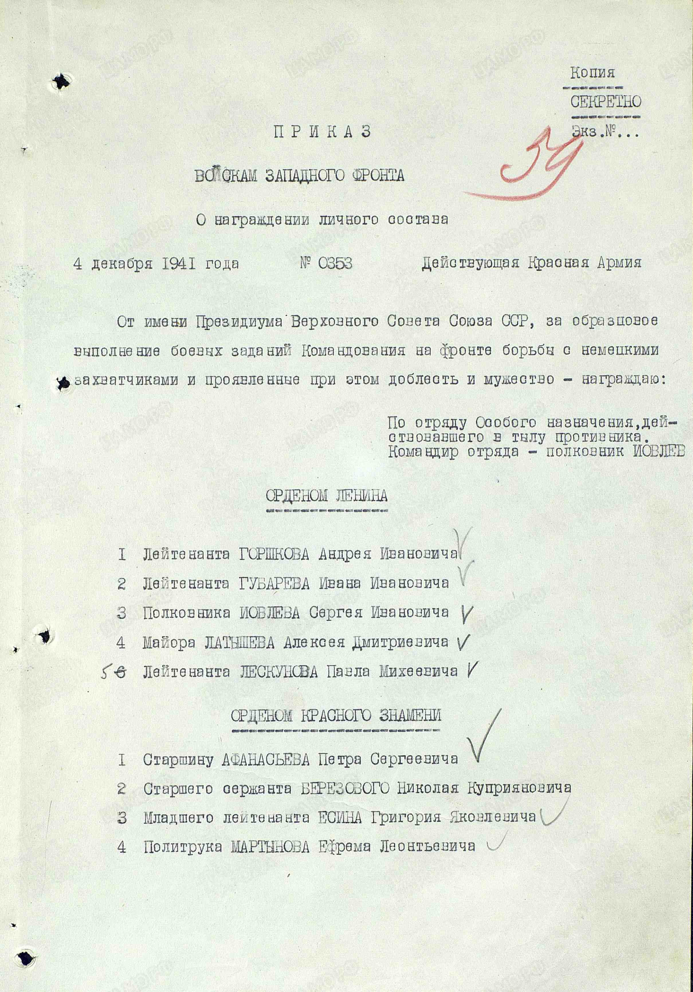 Командир отряда полковник Иовлев Сергей Иванович (1899 г.р.) , комиссар старший политрук Стригунов Игнатий Иванович.