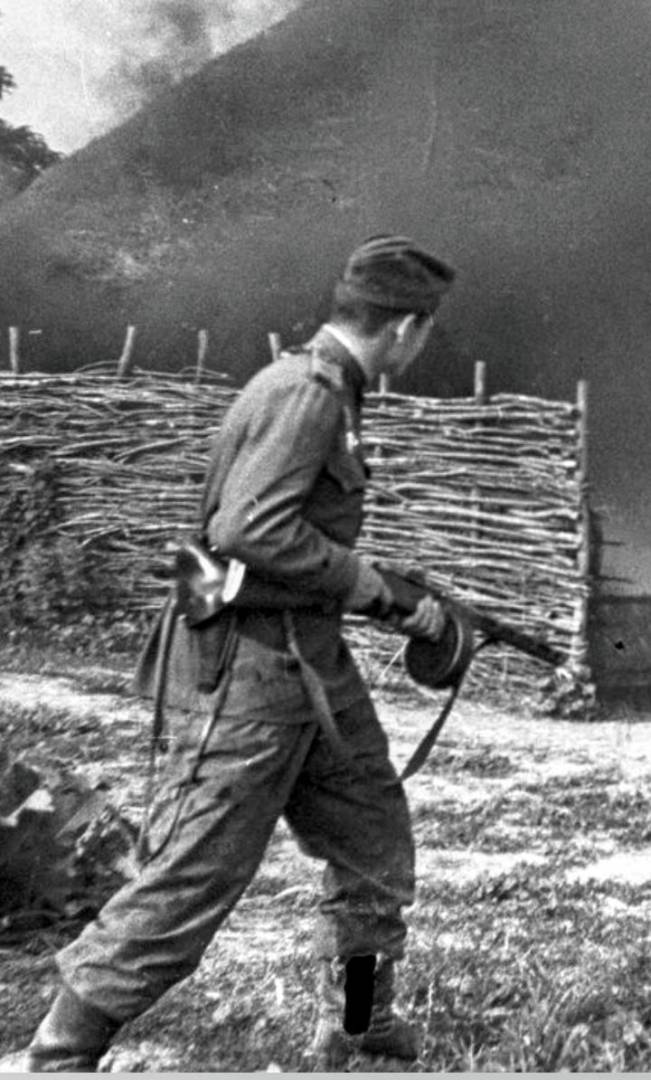 Старшина Сердюков В. Д. автоматчик 299 стрелковой дивизии 53 армии в начале апреля 1944 года.