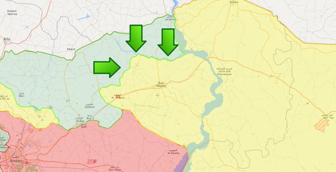 На севере Сирии отмечается концентрация про-турецких вооружённых формирований на границе с курдскими территориями по направлению Манбиджа :