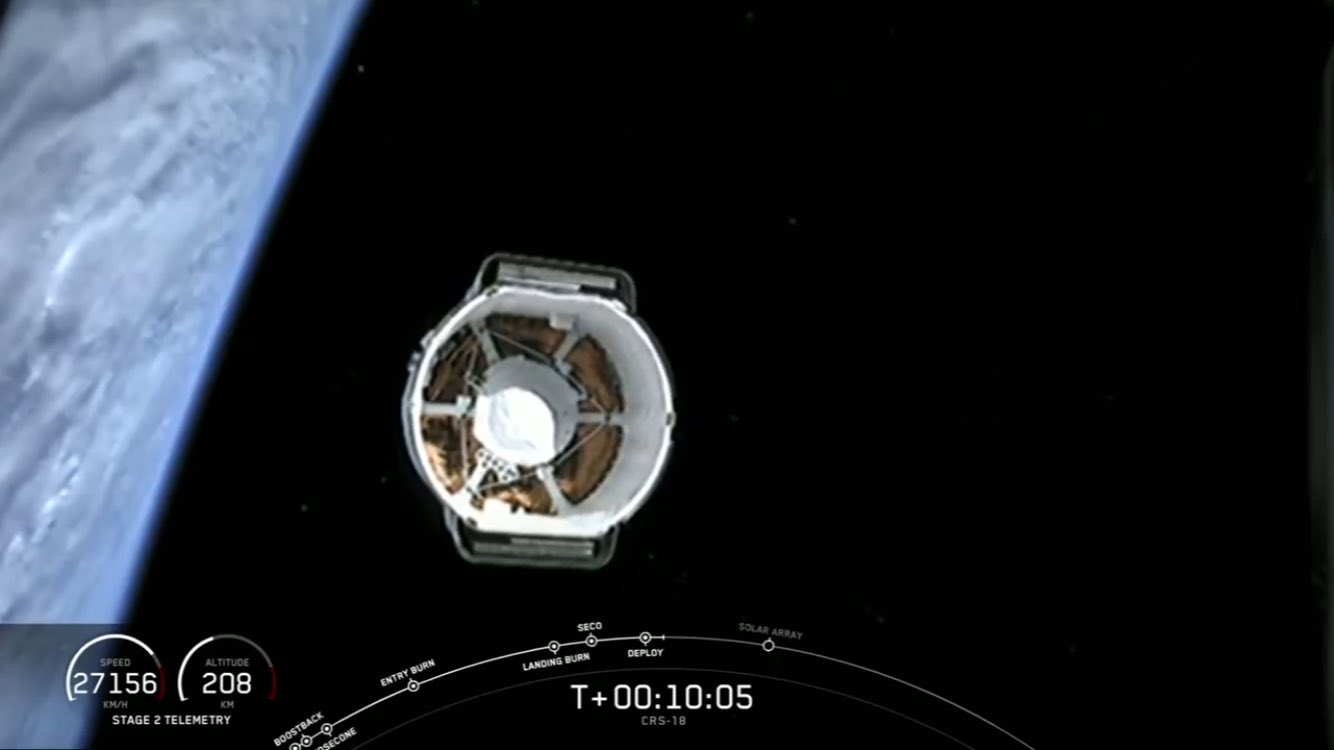 Ракета-носитель Falcon 9 Block 5 успешно стартовала с площадки на космодроме им. Д.Ф.Кеннеди. и вывела на орбиту полета к МКС корабль снабжения Dragon, первая ступень носителя совершила успешное приземление.