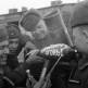 Экипаж советского бронеавтомобиля БА-10 бронероты отдельного дивизиона разведки 30-й кавалерийской дивизии: командир бронемашины старший сержант Евгений Петрович Эндрексон (год рождения — 1923), башенный стрелок сержант Владимир Поликарпович Поршаков (год рождения — 1921) и овчарка Джульбарс. Южный фронт.