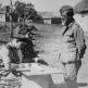 Советский солдат осматривает местность на мосту реки Шпрее в Берлине. Рядом предположительно лежит труп советского танкиста.