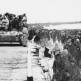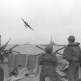 Красноармейцы с флагом СССР у имперского орла над главным входом аэропорта Темпельхоф (Berlin-Tempelhof).