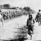 Красноармейцы с флагом СССР у имперского орла над главным входом аэропорта Темпельхоф