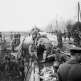 Советские солдаты выгружают ящики с оружием, доставленные по Дороге жизни