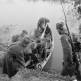 Советские солдаты выгружают ящики с оружием с судов, прошедших Дорогой жизни через Ладожское озеро.
