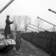 Бойцы саперной роты 185-го гвардейского стрелкового полка 60-й гвардейской стрелковой дивизии 32-го стрелкового корпуса 5-й ударной армии 3-го Украинского фронта изготавливают переносные проволочные заграждения-«рогатки».